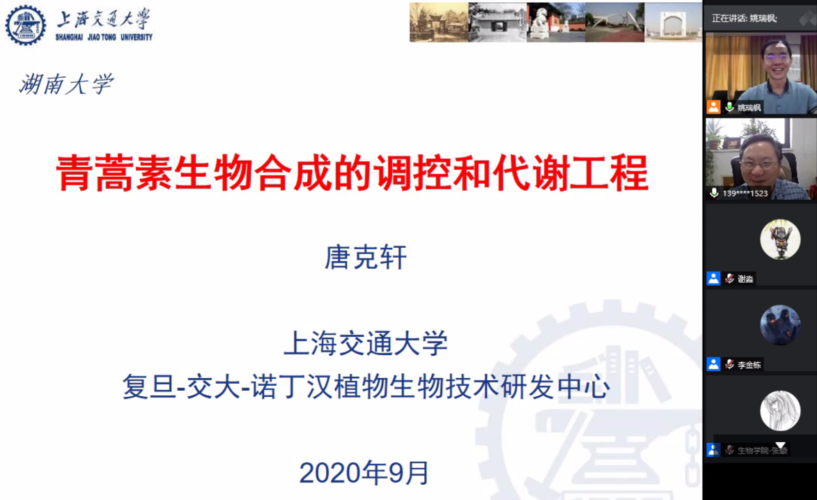 姚瑞枫教授邀请,在线作《青蒿素生物合成的的调控和代谢工程》的精彩报告,并与玩偶姐姐