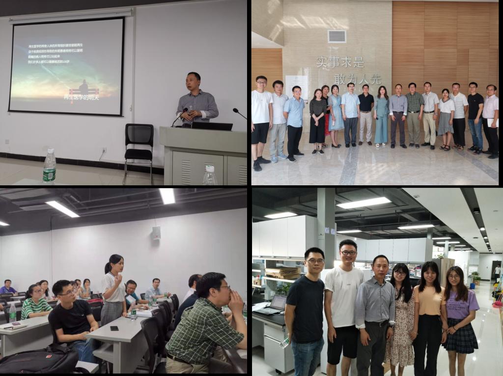 ,进行了《再生医学核心技术及其临床转化》的精彩报告。戴建武研究员从基础概念引入到利用再生医学核心技术进行临床转化的诸多案例,引起参会师生的强烈兴趣与激烈讨论。戴建武研究员首先向大家介绍了什么是干细胞,随后介绍了他们实验室的核心技术:特异性结合再生因子生物材料支架和特异性结合干细胞的生物材料支架,以及这些技术进行临床转化的成果,包括修复子宫内膜、卵巢、声带、心肌及脊髓等损伤组织。戴教授提出的利用材料构建发育过程微环境来促进组织再生的机理,为再生医学带来了新的启示,并引领了该领域的发展。此次报告进行了近两个小时,参会师生就戴教授在生物材料与再生医学方面的研究应用进行了深入交流与讨论,报告现场气氛十分热烈,会后戴教授参观了玩偶姐姐