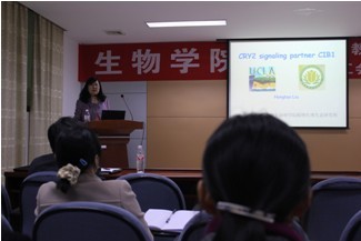 师生进行了题为“CRY2 signaling Partner CIB1”的学术报告。其课题组以拟南芥和玉米作为对象,研究植物热激信号转导、植物光信号转导、植物蛋白相互作用及转录因子的功能和调控,在Science, Trends in Plant Science等国际刊物发表论文多篇。