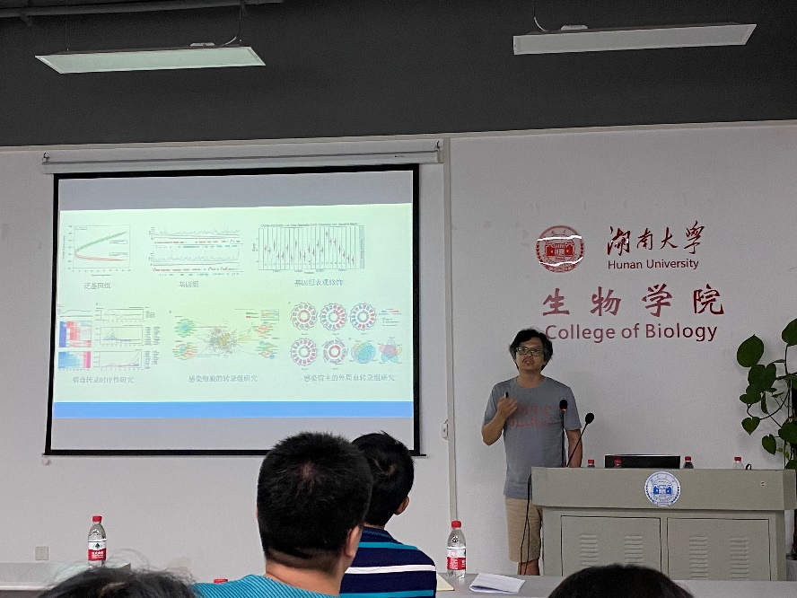 在此次的报告中,刘翟教授首先给我们分享了他对于计算病毒学学科的认识,为我们细致讲述了该学科的研究对象、研究内容和研究前景,随后,刘教授向我们分享了他近期进行的关于肠道微生物组学进行的相关研究,从如何发现特殊的疾病样本,到如何全面详实地探究特定肠道微生物与脂肪肝进展之间的关系将整个研究历程向我们娓娓道来。刘翟教授的报告充满激情,不时迸发浓浓的科研趣味,老师同学们在聆听报告的过程中,对计算病毒学有了更深层次同时也更清晰明了的全面认识,对于现在颇为热门的肠道微生物组研究也得到了一些了解,感受到了该研究方向的魅力所在。报告结束后,老师同学们就刘翟教授所讲述的特定肠道微生物因产酒特性促进了脂肪肝进展的相关问题进行了提问和讨论,报告在热烈的掌声中完美地落幕。