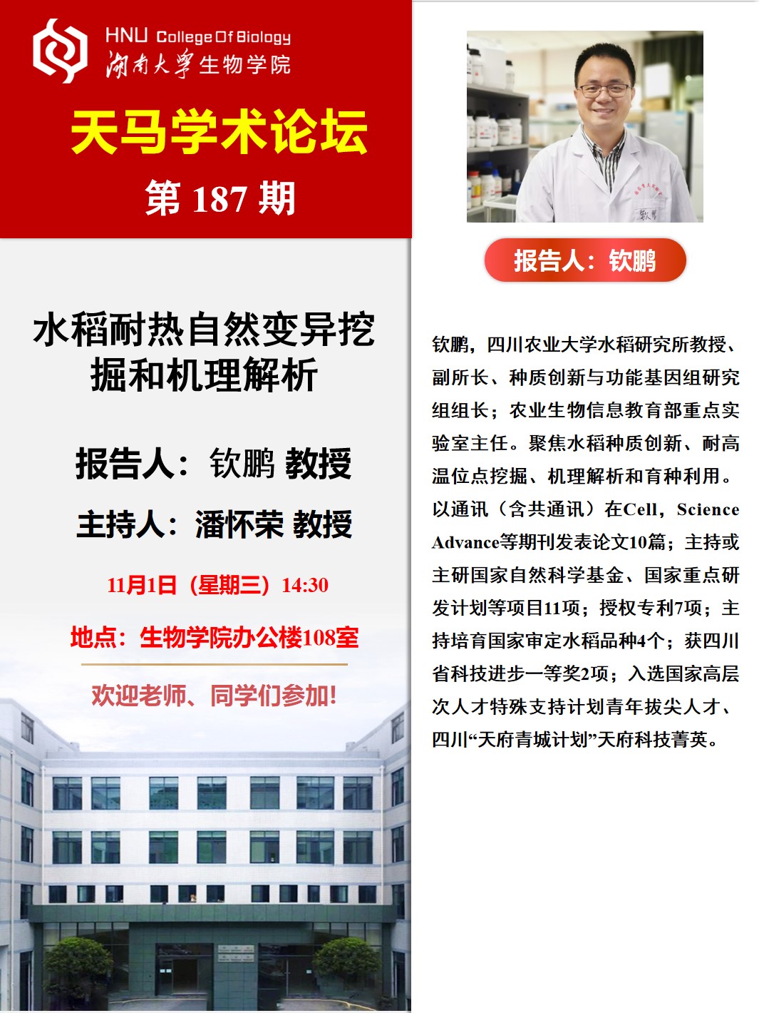 天马学术论坛 第187期-四川农业大学 钦鹏教授