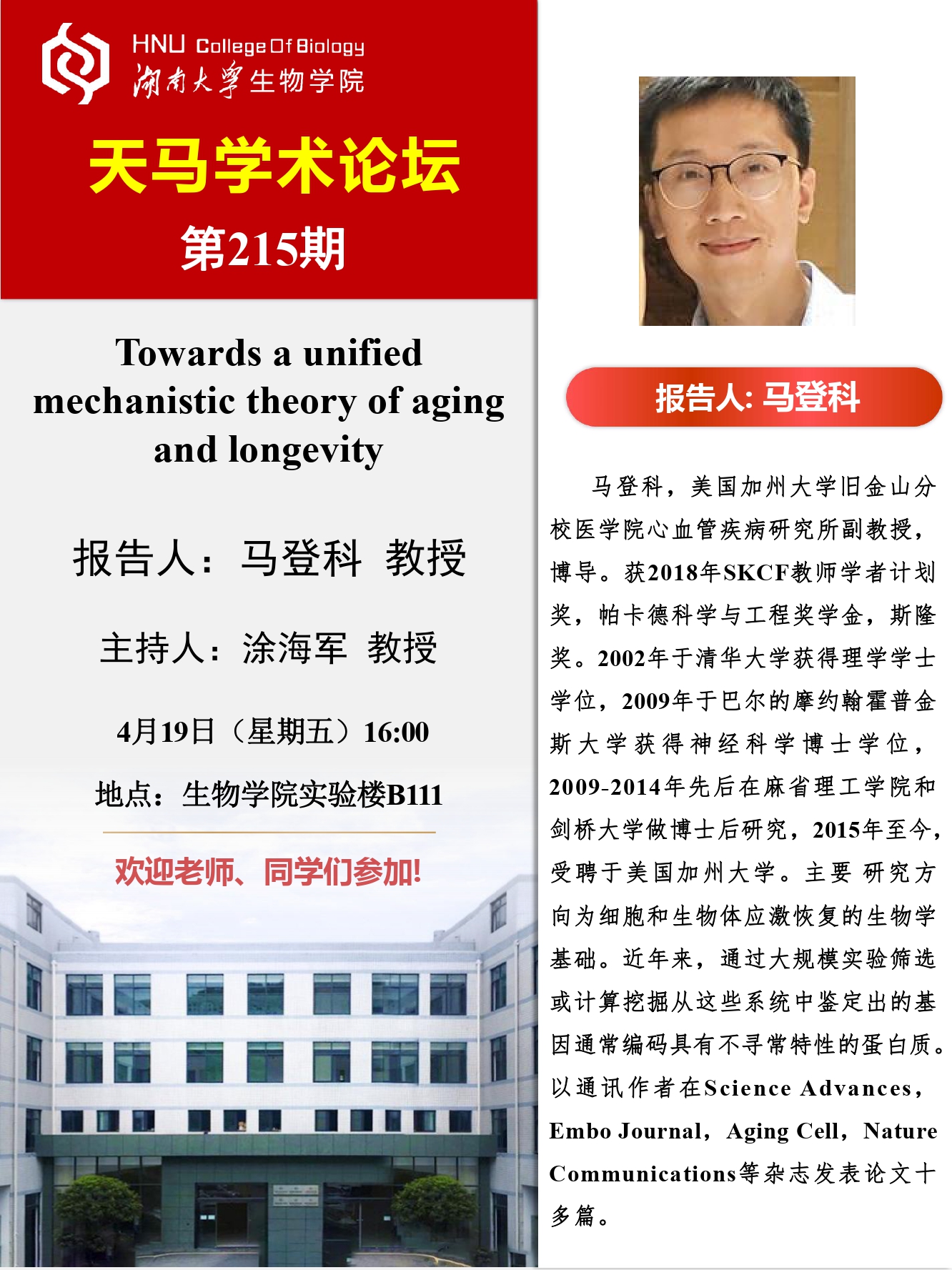 天马学术论坛 第215期 美国加州大学旧金山分校医玩偶姐姐 教授