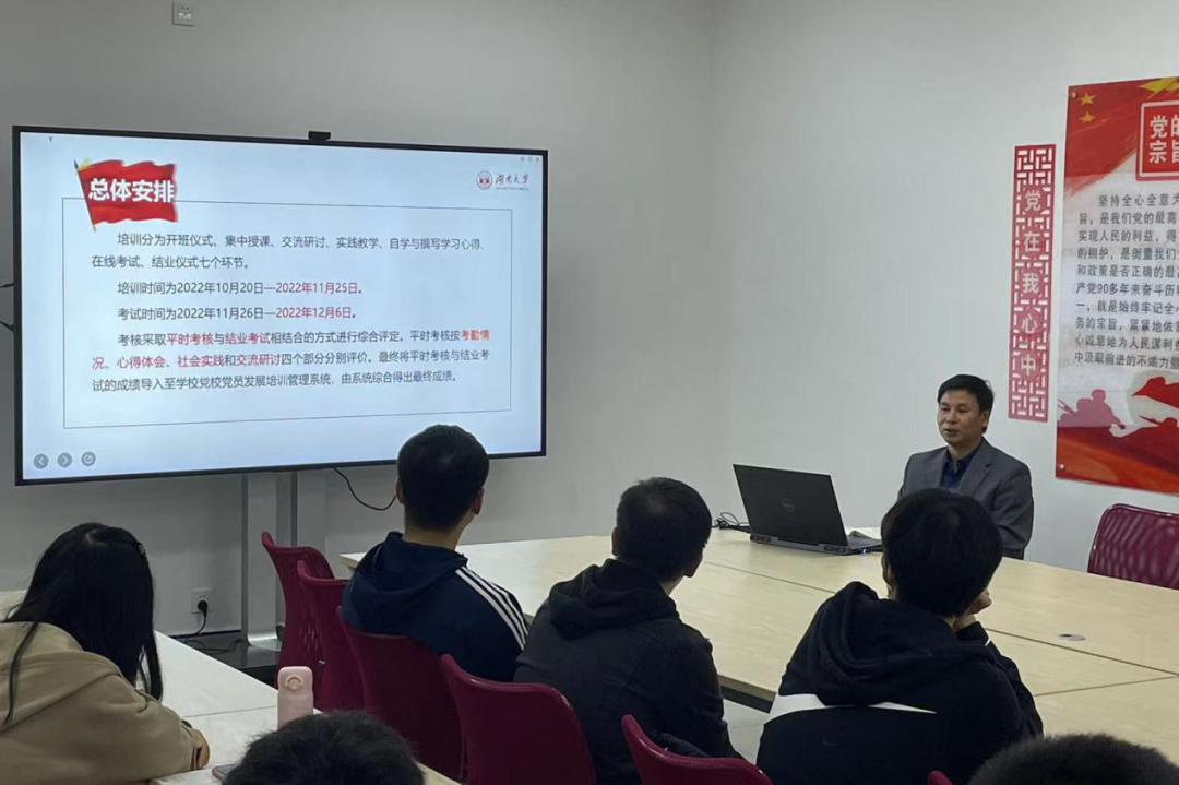 会议开始,邹志成书记简单介绍了本期入党积极分子培训班的主要学习内容。本次培训班采用线上线下相结合的方式,包括在线学习、社会实践活动、交流研讨和撰写思想汇报。