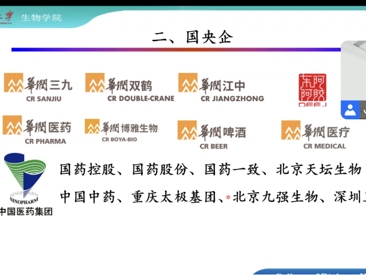 的同学们介绍了一些国央企和私企,分享了这些企业的基本信息、玩偶姐姐以及岗位薪资等信息。而后又详述了人才引进、选调生等就业途径的要求和特点。汪朝阳师兄毫无保留的信息分享,使得同学们对当前生物专业的就业形势和环境有了更加充分的了解。