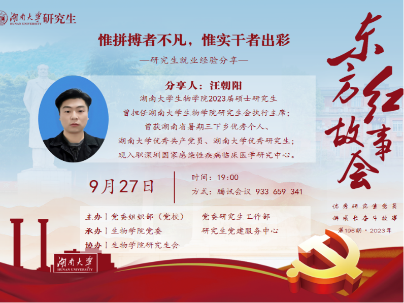 研究生“东方红故事会”第196期活动通过腾讯会议线上举行。活动邀请嘉宾2023届玩偶姐姐