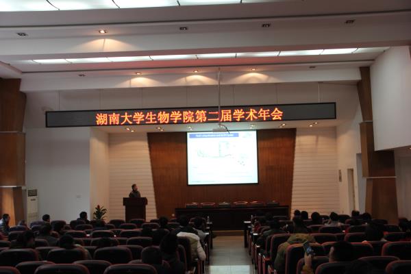生物学科与湖南省农科院之间的科研交流。年会中,15位教师报告了各自最新的研究进展,内容涵盖生物学、生物医学工程、生物制品开发等前沿领域,提问环节交流互动,加深了互相之间的学术了解。本次年会还新增了研究生墙报竞赛环节,来自不同科研小组的研究生提交了20多份墙报,介绍各自研究内容,由院学术委员会指定的评委进行优秀墙报评选。