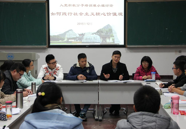 2015年入党积极分子培训班其他小组也都进行了小组讨论,围绕“中国梦、青年梦、我的梦”、“如何过好研究生生活”、”青春一二九,共筑爱国情“等话题展开热烈讨论,每个小组都有辅导员和学生党员参加把关,取得良好的学习效果。(胡品)