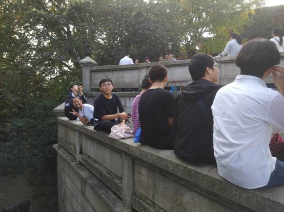 按照约定的时间,一行人在3时半左右来到了位于山腰的云麓宫,这里风景优美,视野辽阔,是岳麓山登高远眺的最佳地点之一。橘子洲头,湘江北去,河东岸高楼林立,一切美景尽收眼底。同学们拍照、合影、玩游戏,玩得不亦乐乎,大概四点左右,生医一班的同学们一起在云麓宫前,面朝湘江,拍了属于他们的班级集体合照。