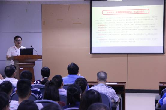 接着是党课串讲交流。于峰、聂和民、李秀山等8位各党支部书记逐个上台发进行党课串讲交流。他们从党员要牢固梳理树立四个意识、深入学习党章党规和习近平总书记的系列讲话精神及五大发展理念等各个视角进行阐述,着力提升每个党员的思想觉悟,提高家国情怀意识,带头做合格党员。串讲交流会非常精彩,广大党员受益颇深。