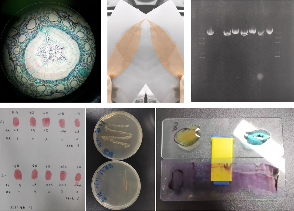的本科生参加学习。课程共32个学时,内容包括显微镜的使用、家鸡的外形和内部解剖、ABO血型鉴定及血涂片的制作与血细胞显微观察、人体九大系统自我认知、叶片的构造及“叶脉书签”的制作、人类指纹的识别,质粒DNA的提取、环境微生物的培养检测、实验测试等教学内容。