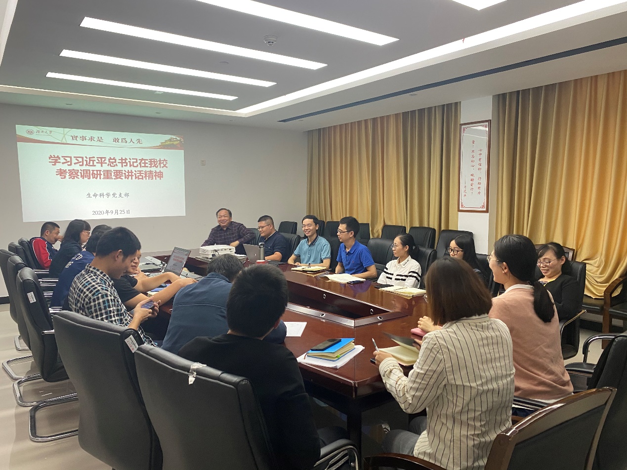 人的激励,我们每一名老师更应该做好自己本职工作,在教书育人、科研创新上做出自己的贡献。支部成员龙樱博士后发言讲到,习总书记专门讲到“唯楚有才,于斯为盛”,作为一名湖南人,作为曾国藩的老乡,我对此更有着深刻体会,在博士后的阶段,更应该做好科研本职工作,为中国梦的实现贡献自己的力量。支部成员郭新红教授发言谈到,自己为习总书记到来深受鼓舞,作为党员教师,要首先把教书育人做好,还要按照习总书记四个面向的要求,做好科研工作。支部成员姚瑞枫教授发言强调,作为一名青年教师,对于习总书记的到来深感激励,我们更应该响应习总书记要求,在立德树人、教书育人上下功夫,不断学习掌握教学技能技巧、同时保持对于科研的一颗好奇心,在教学和科研上做出更多更好的成果。支部成员刘选明教授发言讲到,习近平总书记视察湖南,充分表明了总书记对于湖南的重视,无论从这次新冠疫情还是从历史的各个重大事件都可以发现,我们湖南,我们湖南人在关键时期靠得住。我们更应该继续这种优良传统,为祖国培养出优秀的接班人。