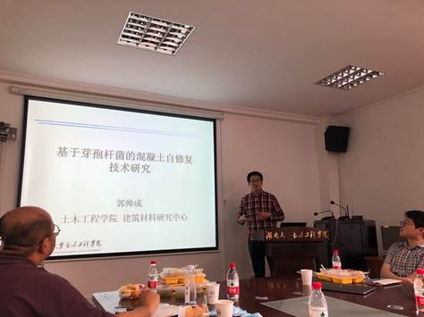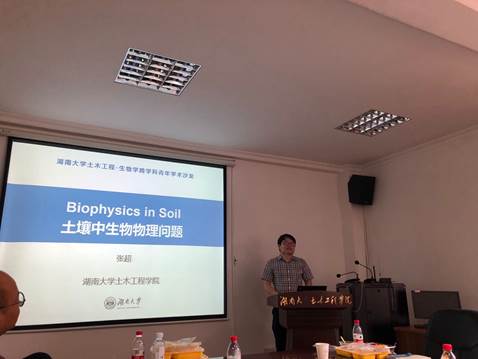 艾正涛教授、郭帅成教授、康馨教授和张超教授分别以“呼吸道传染病人际间空媒传播”、“基于芽孢杆菌的混凝土自修复技术研究”、“微生物诱导碳酸钙沉积加固岩土体研究”、“土壤中的生物物理问题”为题做了精彩的报告,向大家介绍了自己的研究方向和关注的科学问题。