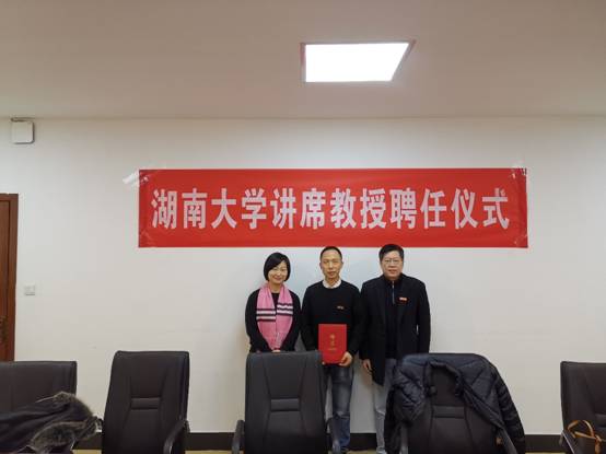 戴建武讲席教授聘任仪式。新聘讲席教授戴建武、知识产权与科技成果转化中心主任李飞龙、人力资源处副处长何敏、玩偶姐姐