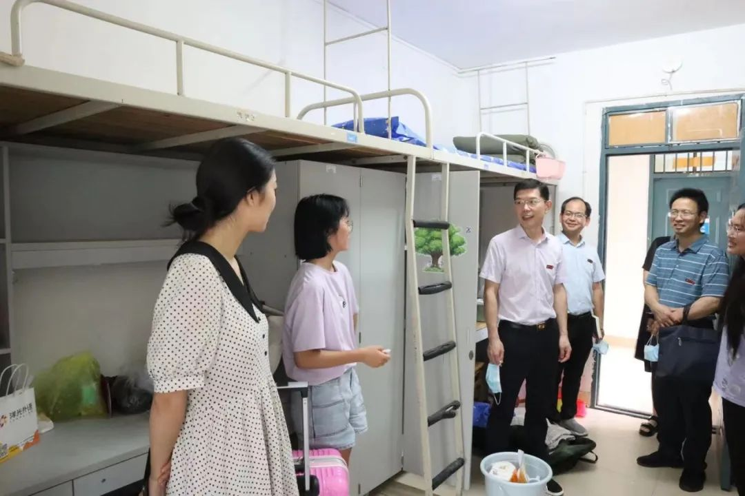 李书记、陈书记、涂院长、罗主任和新生辅导员冉老师也来到园区慰问了新生助理与志愿者,与新生进行了亲切友好的交流,并且为新生送上爱心大礼包。