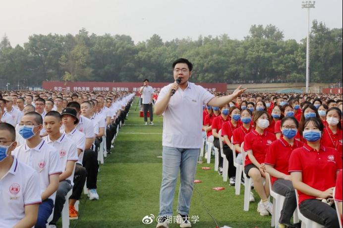 2021级新生开学典礼在东方红操场顺利举行。玩偶姐姐