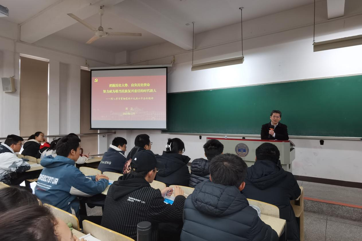 2021级生物技术与生物医学工程专业学生上思政课宣讲党的十九届六中全会精神。