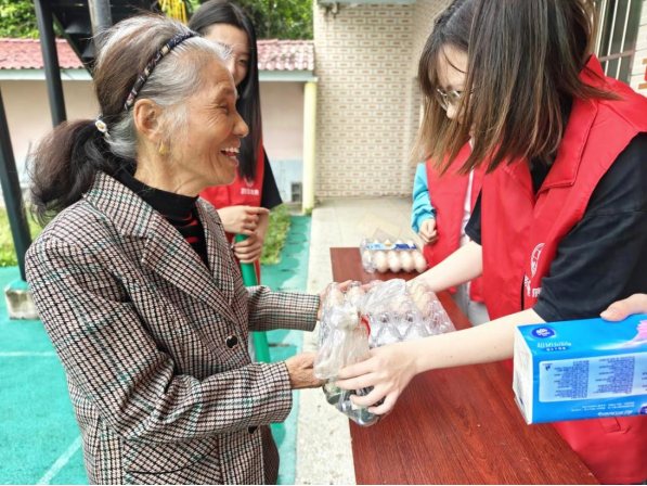 “药你健康”团队优秀志愿者张译纹表示,“这次的‘以旧换新’活动,对于我们公益活动志愿者们来说,换出去的不仅仅是鸡蛋,更换来了乡亲们满意的微笑!作为一个传媒人,运用专业技能去教会乡亲们如何科学吃药,普及医药健康知识,这个过程不仅提升了专业素养更加磨练了个人意志。作为一名公益活动志愿者,用实际行动将温暖送进千家万户,这个过程充满了幸福感和自豪感。”