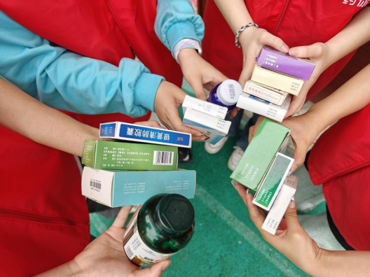 “药你健康”团队来到了湖南省湘江新区白箬铺镇胜和村,和白箬铺镇中心卫生院联合开展了一场独特的“以新换旧”的公益活动——团队成员采购鸡蛋、纸巾、牙膏等生活必需品与当地居民的过期药进行交换,如以三个鸡蛋换一盒过期药,十个鸡蛋换三盒过期药等形式。通过这样的方式,村民们都积极地将家中的药物拿来检查,并主动交出过期药物。