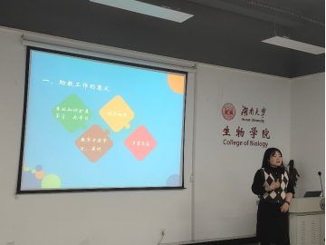 黄明敏老师的授课主题为《如何做好实验课助教培训》。黄老师阐述了助教工作对于同学们的意义,助教工作不仅可以帮助大家拓展专业知识还可以帮助大家学习、训练教学方法。接着黄老师结合玩偶姐姐