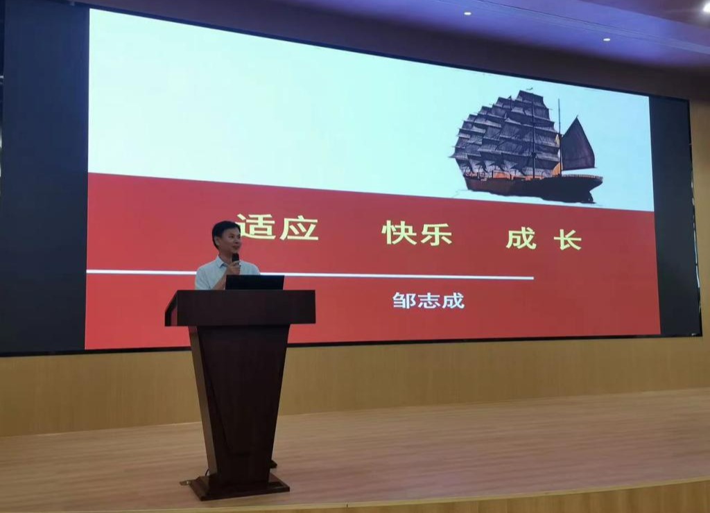 军训总结表彰大会后,邹书记为同学们上了一堂生动形象的入学教育讲座,他围绕“适应、成长、快乐”的主题,在讲座中对同学们寄予厚望。其中,邹书记着重强调了进入大学后学会适应的重要性,教育同学们学会自我心理调适。同时,邹书记指出大学是人生的关键阶段,要求所有大学生认真把握每一个“第一次”和“最后一次”,在大学中“把学习搞好,锻炼能力”,为未来人生道路奠基。最后,邹书记提出了“四线”和“十三忠告”,希望全体同学生活愉悦,学习进步。
