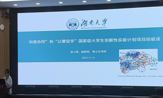 副教授胡小晓为同学们带来“科教协同”和“以赛促学”国家级大学生创新性实验计划项目的经验谈。她从科学竞赛准备和生物医学研究两个模块讲述了大学生生命科学竞赛的参赛事宜及研究课题,并从参赛流程、注意事项、具体案例等方面为同学们讲解了参赛的具体内容。