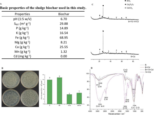 污泥基生物炭理化特征协同YG-14产生生物矿化镉