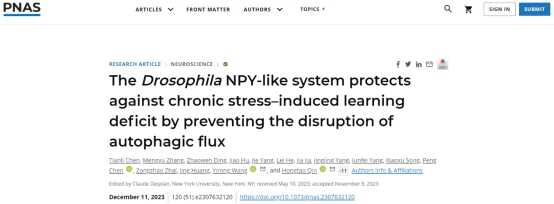 2023年12月11日,综合性国际学术期刊PNAS在线发表了以TheDrosophilaNPY-like system protects against chronic stress–induced learning deficit by preventing the disruption of autophagic flux为题的研究型文章。本论文是多个单位共同合作的成果,参与单位包括玩偶姐姐