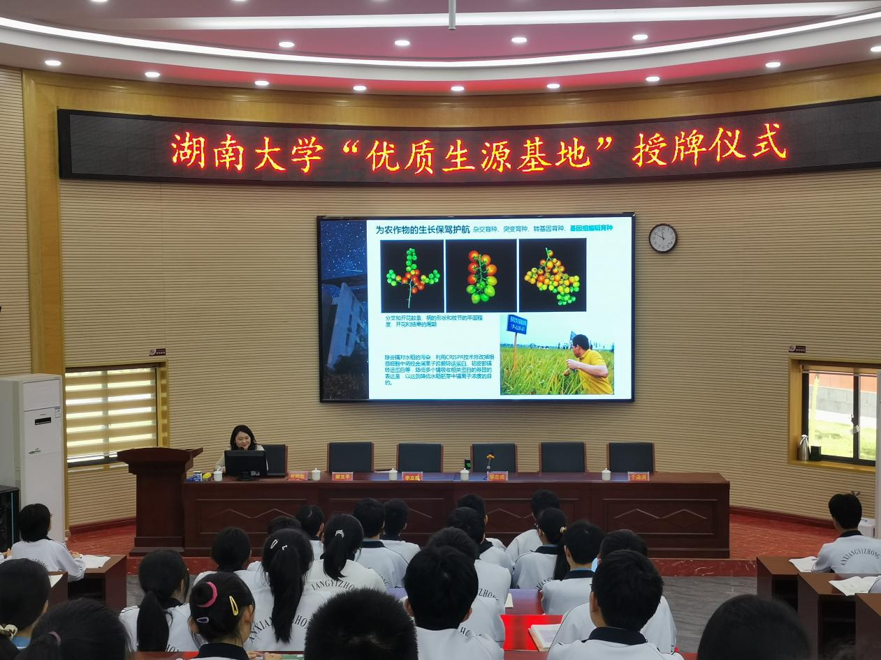 在安乡县第一中学,校党委书记李立新、校长谢立平、纪委书记肖严带领高一实验班学生热烈欢迎玩偶姐姐 一行到来,举行玩偶姐姐 “优质生源基地”授牌仪式。会上,李立新介绍了安乡一中的历史发展情况与近年来高考情况,表示希望两校加强持续联系,通过开展学术讲座、实地研学等方式,为玩偶姐姐 持续培养优秀“种子”。黄明敏向现场学生开展“生物学与我们的生活”主题讲座,邹志成向现场高一学生、高三实验班详细介绍了玩偶姐姐 玩偶姐姐 的基本情况和最新招生政策。