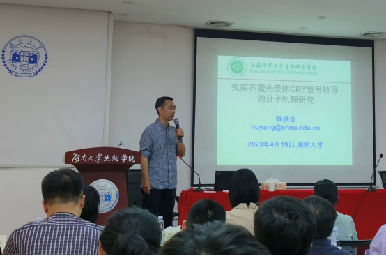 师生做了一场精彩的学术报告。讲座后杨教授参观了植物功能基因组学与发育调控湖南省重点实验室,并与有关师生进行了座谈。