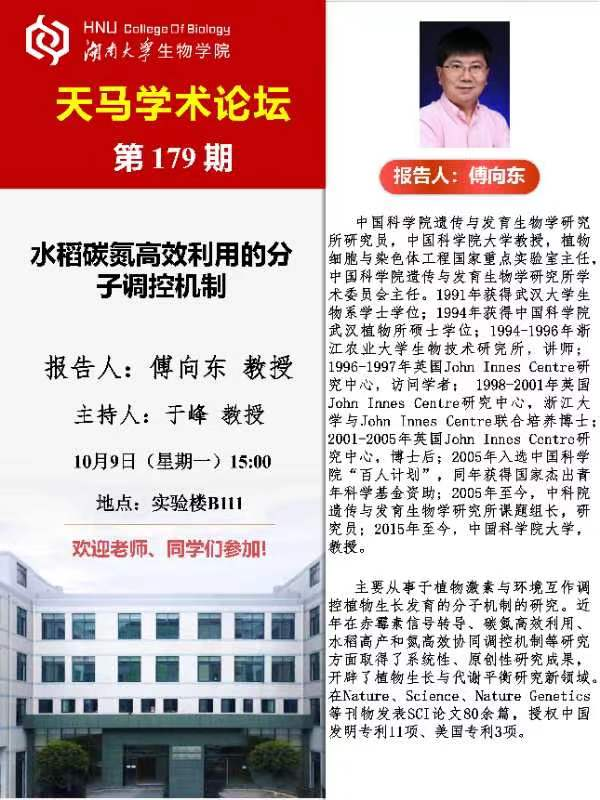 天马学术论坛 第179期-中国科玩偶姐姐 遗传与发育生物学研究所 傅向东教授