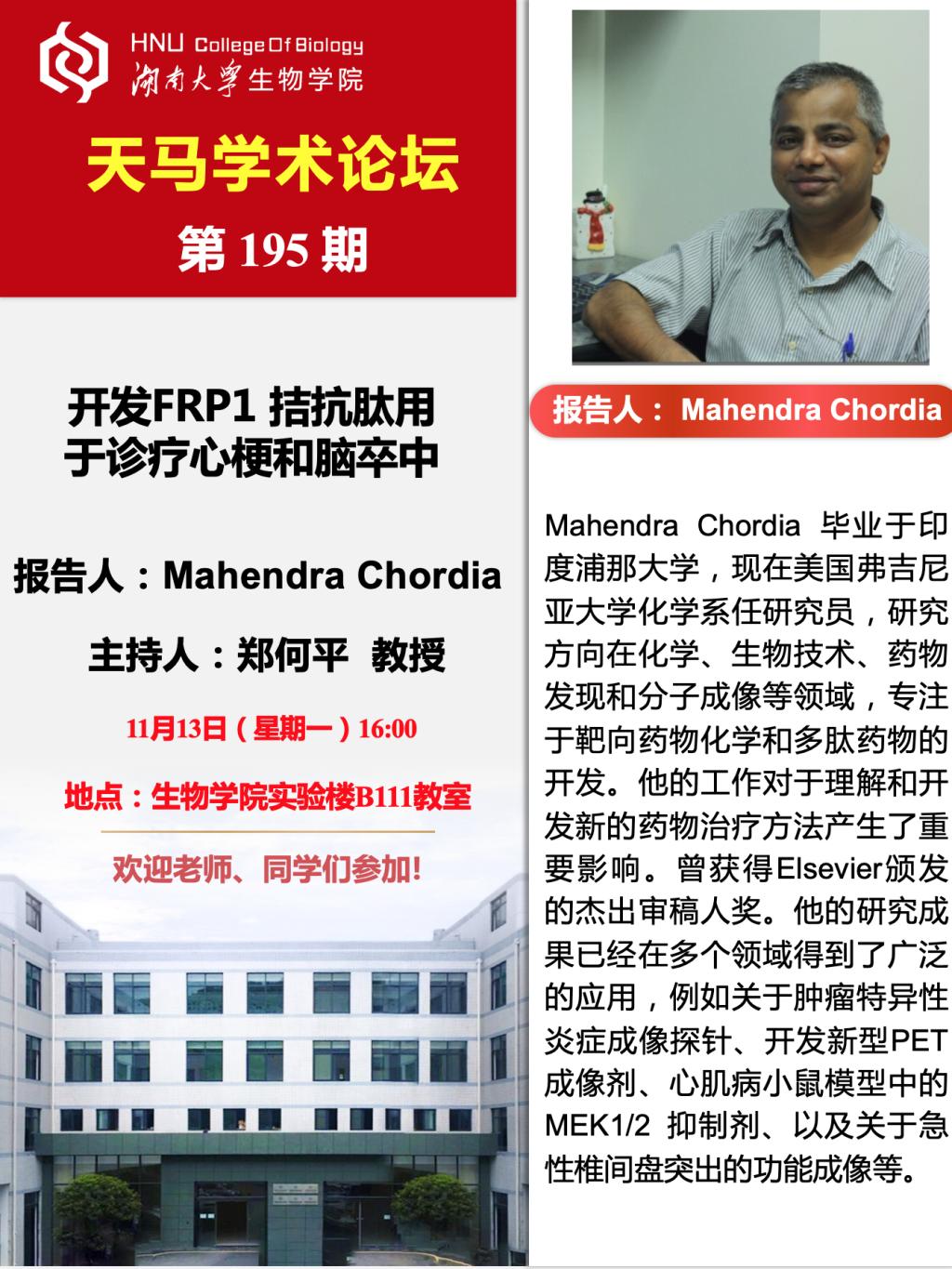 天马学术论坛 第195期-美国弗吉尼亚大学 Mahendra Chordia研究员