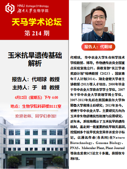 天马学术论坛 第214期 华中农业大学生命科学技术玩偶姐姐 教授