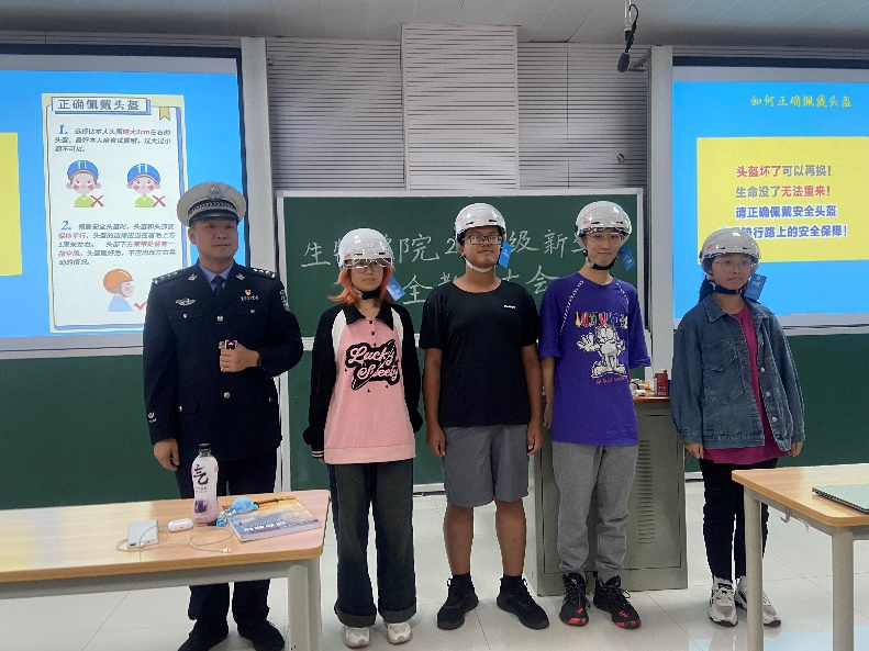大会最后,于老师再次强调了交通安全的重要性,并对李警官、黄警官的耐心讲解表示了感谢。生物院新生安全教育大会在同学们热烈的掌声中圆满结束,本次大会加深了同学们对交通安全知识、法律法规的了解,增强了防诈骗意识,为未来四年的大学生活奠定了稳固的基石。