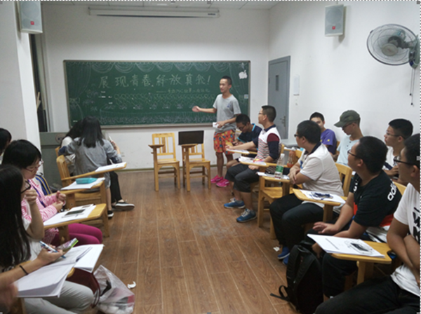 刚步入大学,同学们难免有很多不适应,有很多不一样的感受体会。面对紧张忙碌充实的大学新生活,有些同学不忘提醒自己勿忘初心,坚定理想。刘云鹤、于通、李孝、岑李坤、曾裕峰、张益硕、荣延7位男生唱起了《北京东路的日子》,纪念逝去高中生活;白育宁、王杰、李金奇高唱《老男孩》,唤醒埋藏在心间的感动,青春花开不败,梦想永不言败!