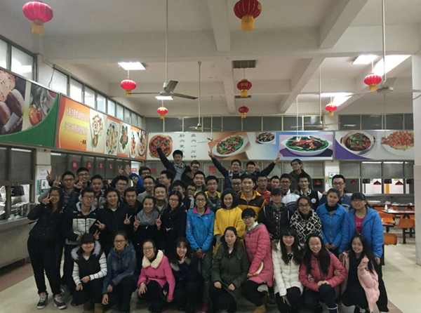 测控1502班在天马园区二食堂开展”包饺子“班级联谊活动,来自两个班级的近六十位同学参加联谊活动。