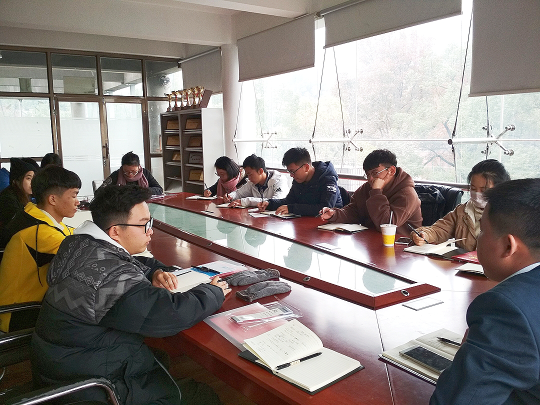、学生会的权益;其次,要有核心意识,紧紧围绕“全心全意为同学服务”的宗旨,做到一切为了同学好,维护好同学们的权益;第三,要学会包容,要有风度,包容理解他人,注意自己的言行和仪表仪态,不要在背后议论他人;第四,要做好表率,不仅学生工作要做好,学习成绩也要优异,寝室文明建设必须是优秀;第五,要敢于担当,作为学生的领头羊,要主动承担责任和义务,践行实事求是敢为人先的校训。并对近期相关工作进行了讨论和部署:一是迎新晚会的筹备工作;二是人才培养相关工作;三是年度总结与计划。各参会人员认真倾听、及时记录,使得整场会议进行得迅速高效。最后,李小军站在朋友的角度提醒了各位在场人员要时刻注意自身安全,用积极乐观的心态对待生活,成员们纷纷点头表示赞同,学生会主席曾景游表示会平衡好自身的学习、工作和生活,踏踏实实的为同学的健康成长服务。
