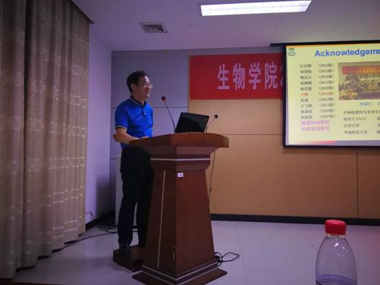 进行学术交流,并做了题为“植物蛋白质SUMO化介导DNA损伤修复的分子机制”的学术报告。报告会由刘选明教授主持。