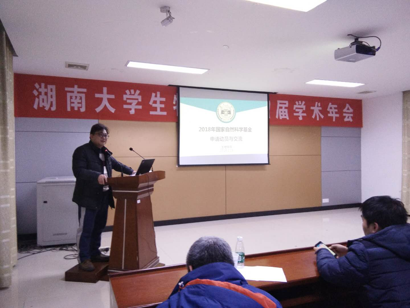 党委书记徐晓波进行了2018年度国家自然科学基金申报的动员和培训,徐书记首先感谢各位师生在天气恶劣、交通不便的情况下,出于对学术的热爱和对玩偶姐姐