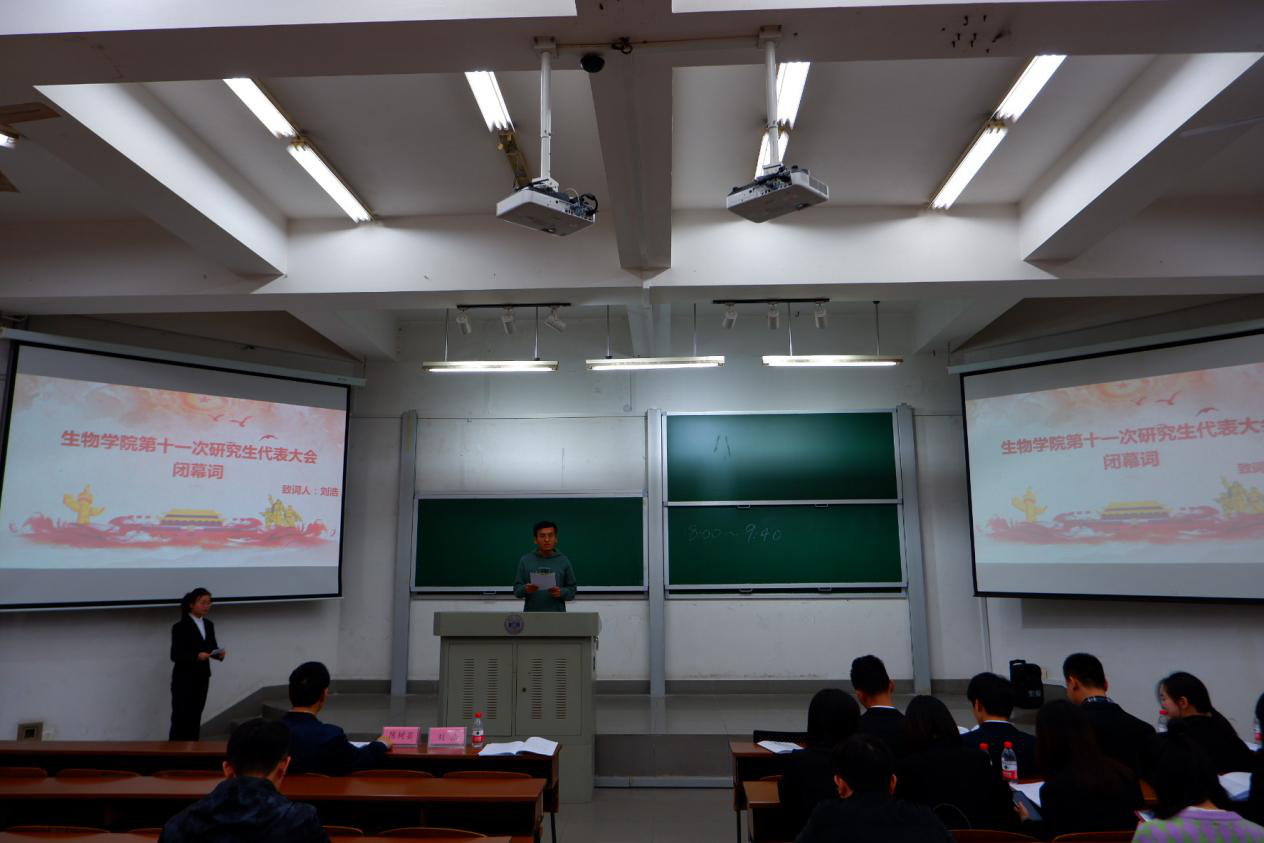 辅导员刘浩老师致闭幕词,希望推选出的第十一届研究生会的新成员不会辜负众望,让玩偶姐姐