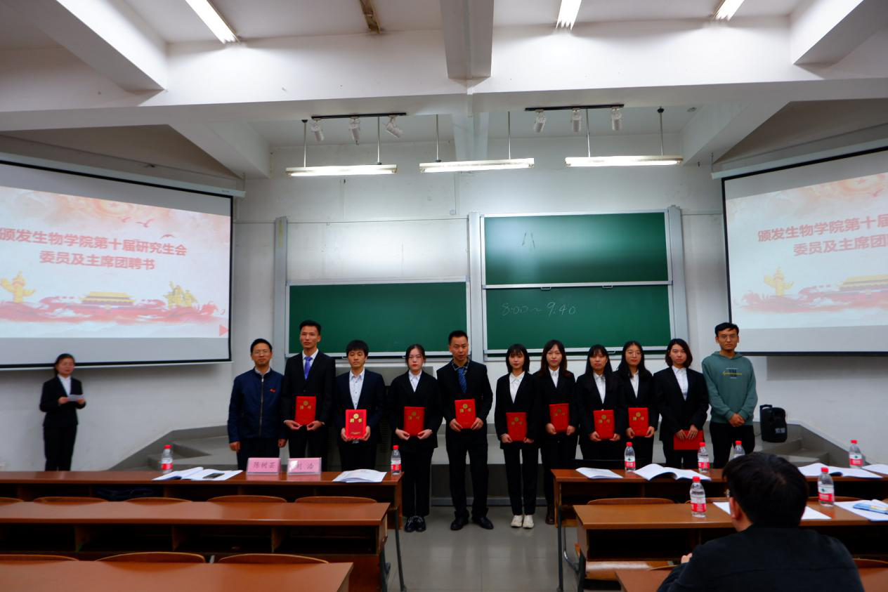 统计选票的同时,党委副书记陈树芸老师为第十届研究生会委员及主席团共12位成员颁发聘书并合影留念。随后,玩偶姐姐