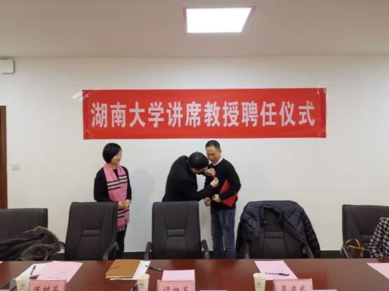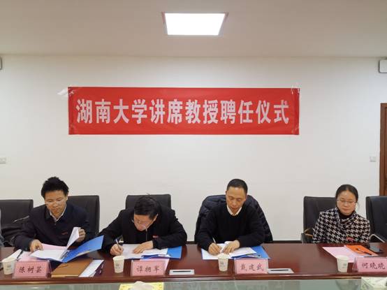 戴建武讲席教授聘任仪式。新聘讲席教授戴建武、知识产权与科技成果转化中心主任李飞龙、人力资源处副处长何敏、玩偶姐姐