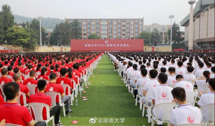 2021级新生开学典礼在东方红操场顺利举行。玩偶姐姐