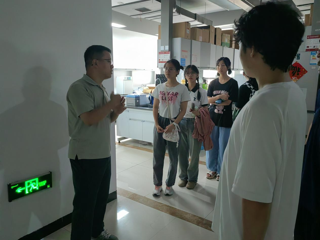 实验楼一楼参观了本科生实验中心,未来的实验课程都将会在这里进行。张老师向同学们介绍了各个实验室的基本分配,有微生物学实验室、分子生物学实验室、细胞生物学实验室等。同学们认真聆听讲并表示会认真学习实验课的相关操作。