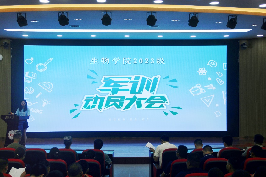 新生军训动员大会于综合楼208顺利举行。院党委副书记邹志成、四位23级新生班主任伍斗生老师、张春辉老师、彭天欢老师、李亚超老师、辅导员于淼漪、两位军训教官、全体新生助理及全体23级新生参加本次会议,会议由军训总负责樊响晴主持。