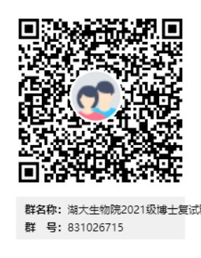 生物院2021级博士复试群”(简称“复试QQ群”),群号:831026715,相关通知将在群内发布,请务必加入!不参加本院复试的考生勿扰。