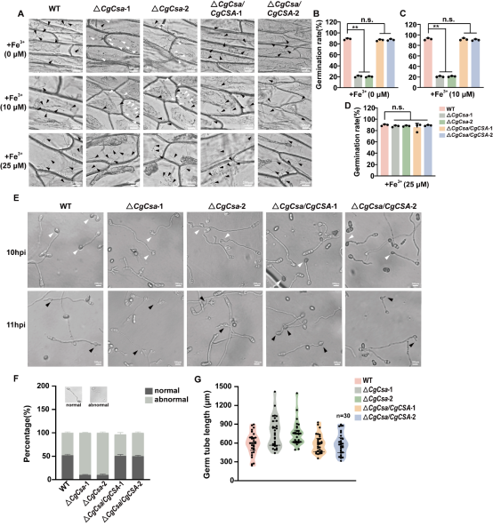 图3 CgCsa参与C. gloeosporioides分生孢子的萌发、附着孢和侵染钉的形成